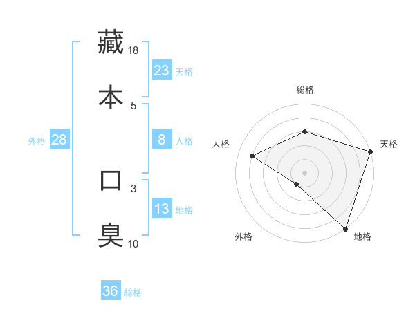 藏本 口臭さんを姓名の画数から五運を鑑定