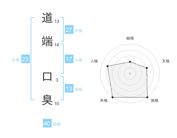道端 口臭さんの地格は13画の5点!