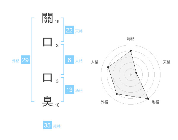 關口 口臭さんの天格は22画の1点!
