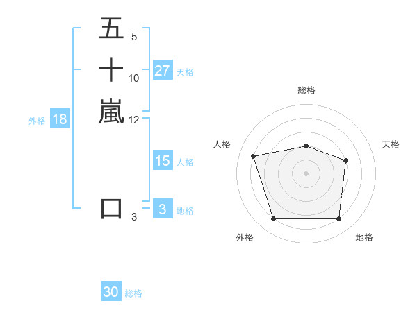 五十嵐 口さんの天格は27画の3点!