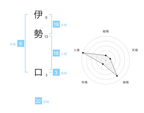 伊勢 口さんの総格は22画の1点!