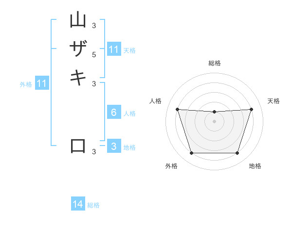 山ザキ 口さんを姓名の画数から五運を鑑定
