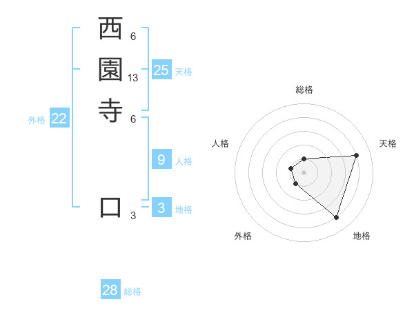 西園寺 口さんの総格は28画の1点!
