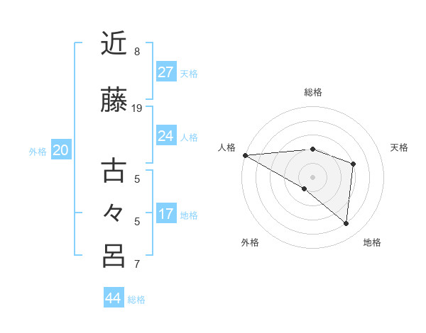 近藤 古々呂さんを姓名の画数から五運を鑑定