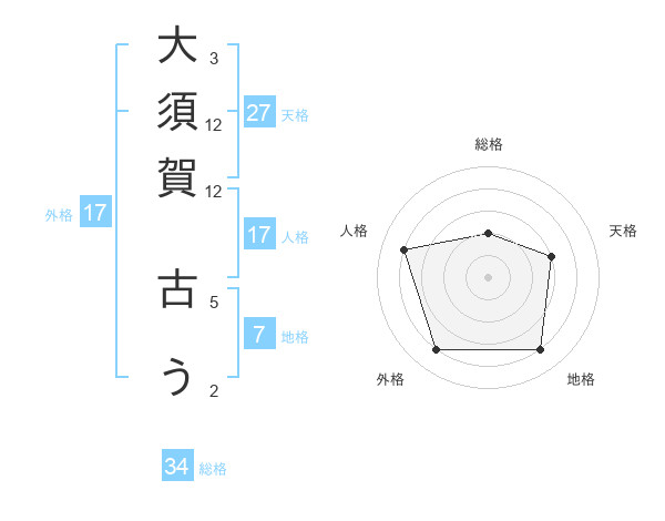 大須賀 古うさんの外格は17画の4点!