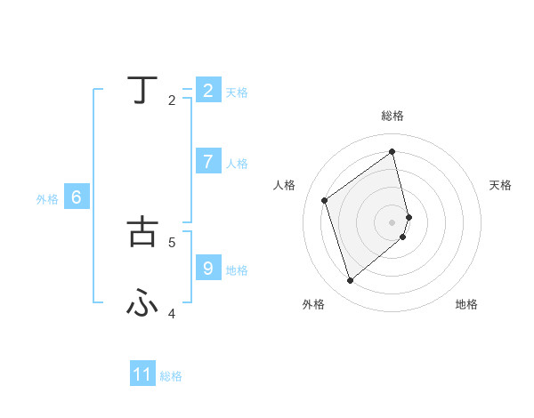 丁 古ふさんの総格は11画の4点!