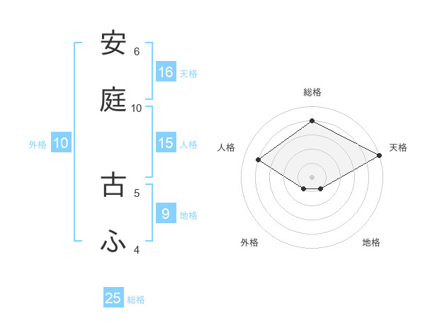 安庭 古ふさんの総格は25画の4点!