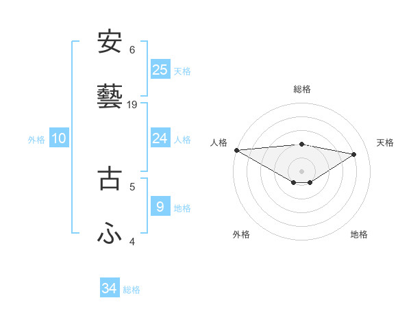 安藝 古ふさんの天格は25画の4点!
