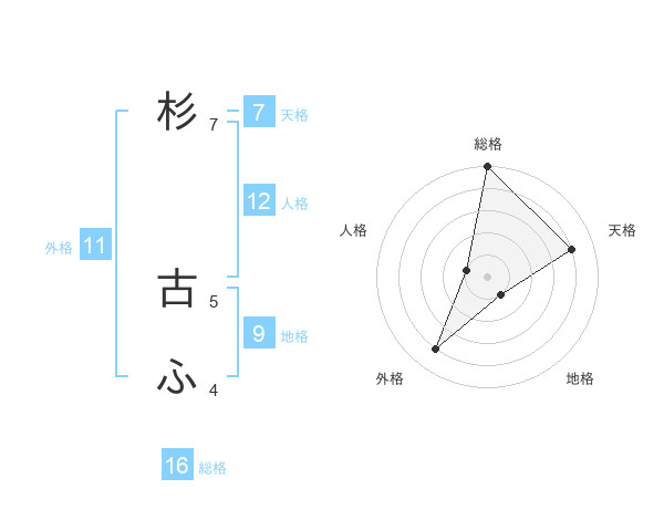 杉 古ふさんの総格は16画の5点!