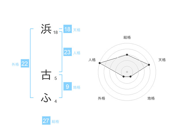 浜 古ふさんの総格は27画の3点!