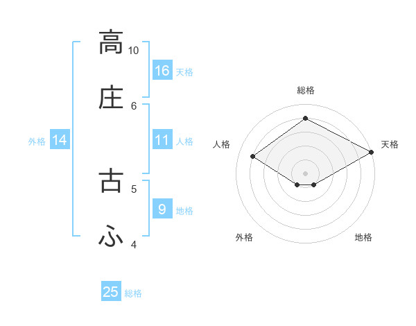 高庄 古ふさんの天格は16画の5点!