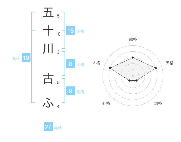 五十川 古ふさんを姓名の画数から五運を鑑定
