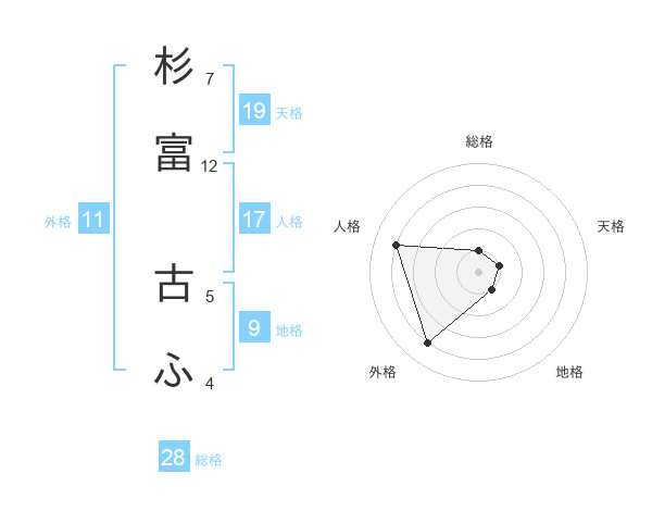 杉富 古ふさんの人格は17画の4点!