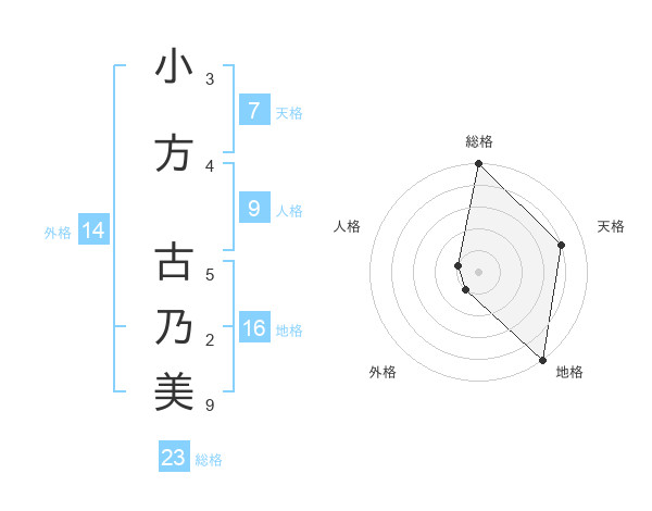 小方 古乃美さんを姓名の画数から五運を鑑定