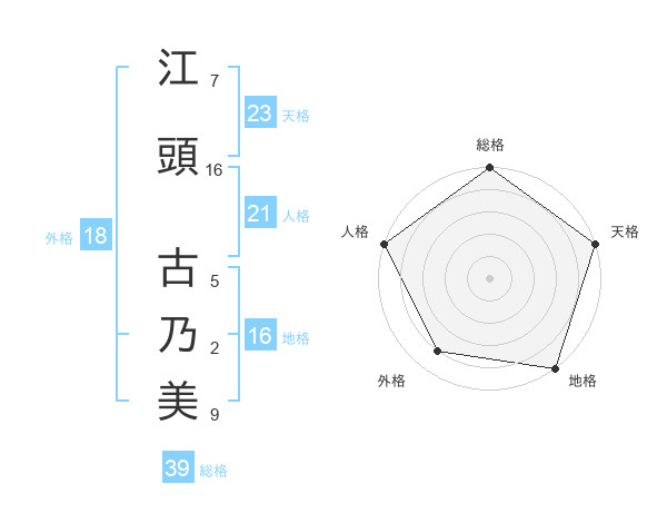 江頭 古乃美さんを姓名の画数から五運を鑑定