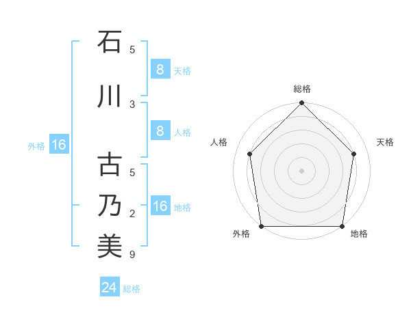 石川 古乃美さんを姓名の画数から五運を鑑定
