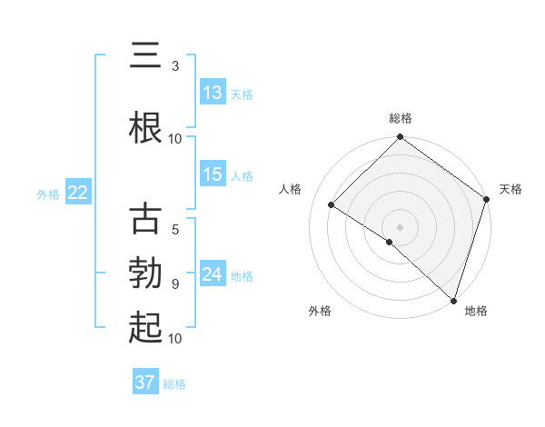 三根 古勃起さんの総格は37画の5点!