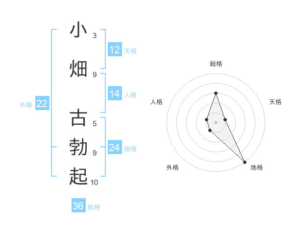 小畑 古勃起さんを姓名の画数から五運を鑑定