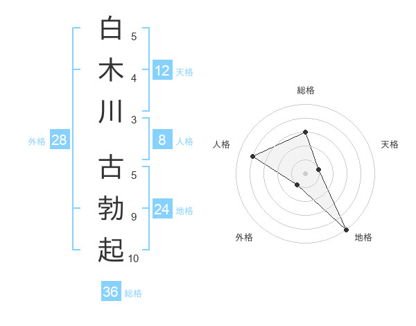 白木川 古勃起さんを姓名の画数から五運を鑑定