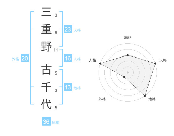 三重野 古千代さんを姓名の画数から五運を鑑定