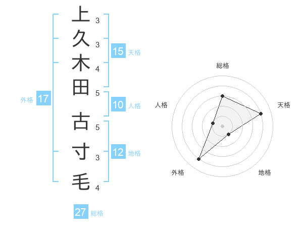 上久木田 古寸毛さんを姓名の画数から五運を鑑定