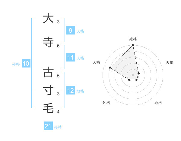 大寺 古寸毛さんを姓名の画数から五運を鑑定