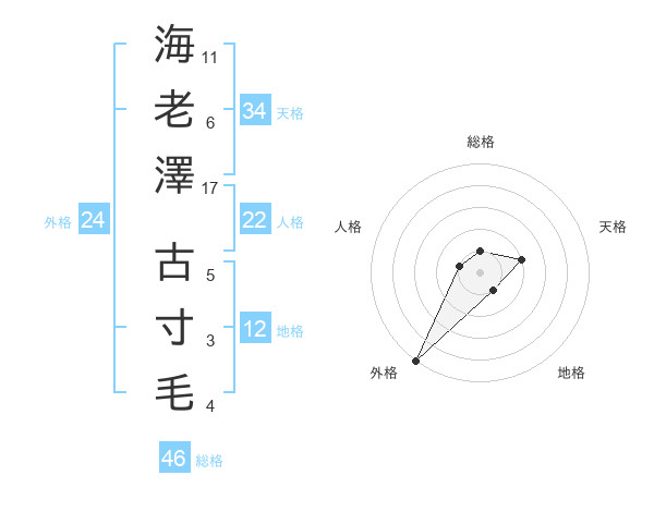 海老澤 古寸毛さんを姓名の画数から五運を鑑定