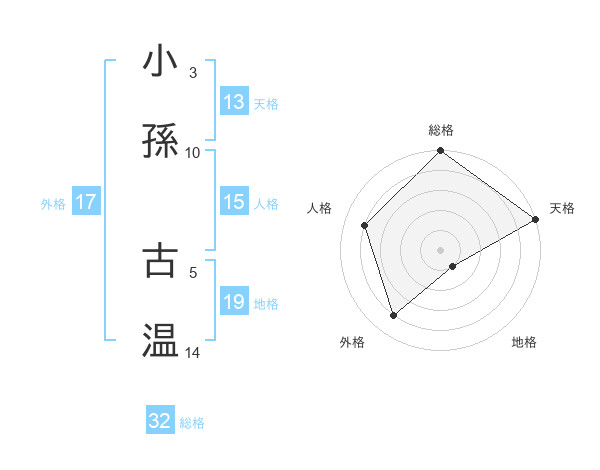 小孫 古温さんの総格は32画の5点!