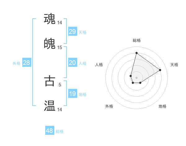 魂魄 古温さんを姓名の画数から五運を鑑定