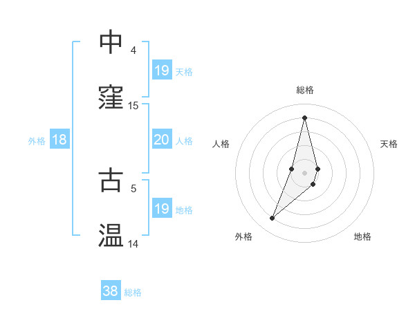 中窪 古温さんの総格は38画の4点!