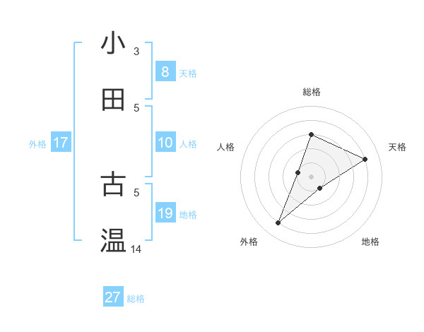 小田 古温さんの総格は27画の3点!