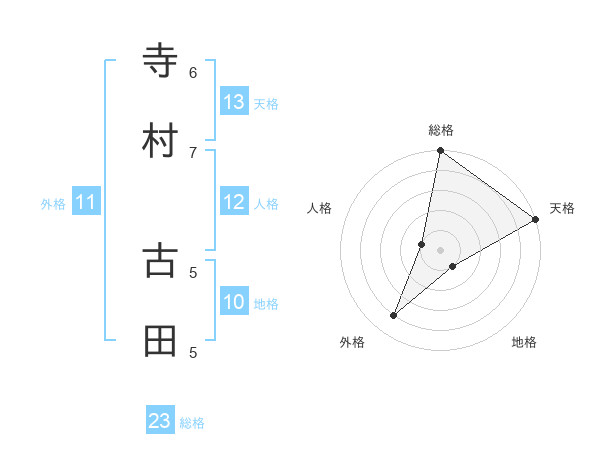 寺村 古田さんの天格は13画の5点!