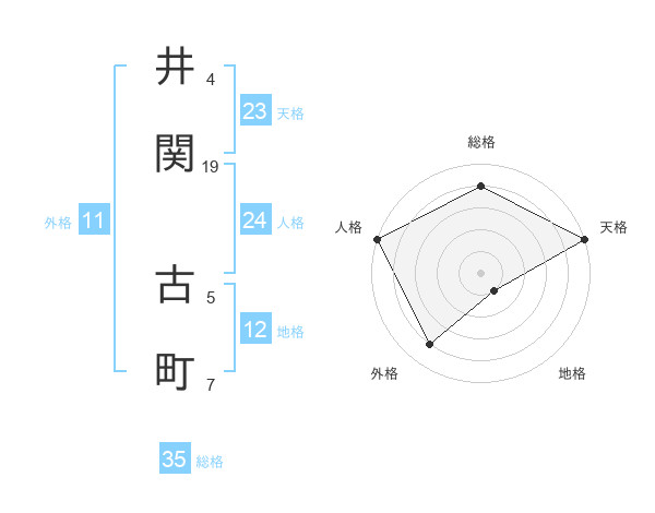 井関 古町さんの総格は35画の4点!