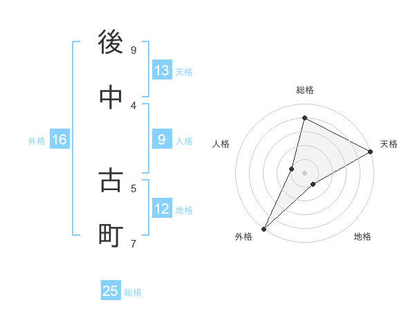 後中 古町さんの天格は13画の5点!