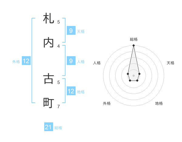 札内 古町さんの総格は21画の5点!