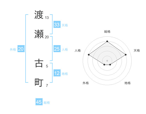 渡瀬 古町さんを姓名の画数から五運を鑑定
