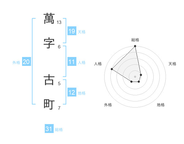 萬字 古町さんの天格は19画の1点!