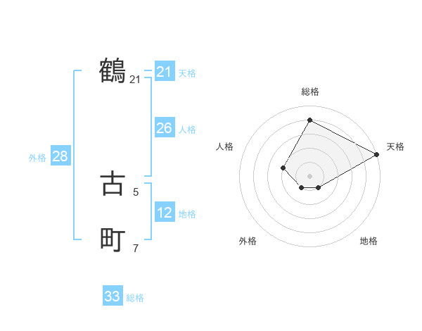 鶴 古町さんの天格は21画の5点!