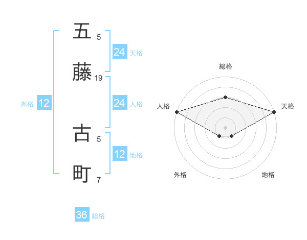 五藤 古町さんの天格は24画の5点!