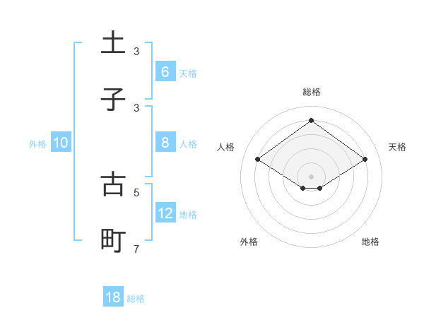 土子 古町さんの総格は18画の4点!