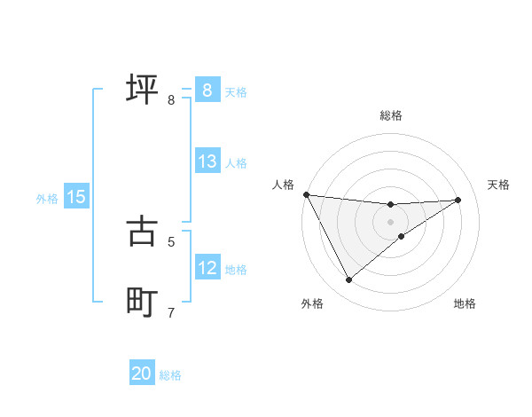 坪 古町さんの総格は20画の1点