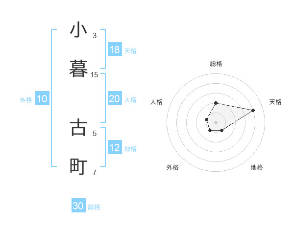 小暮 古町さんの総格は30画の2点!