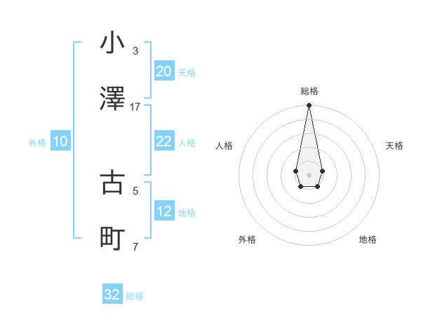 小澤 古町さんの総格は32画の5点!
