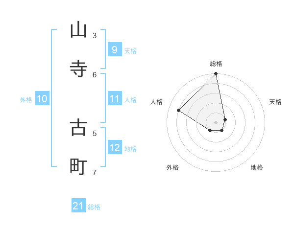 山寺 古町さんの総格は21画の5点!