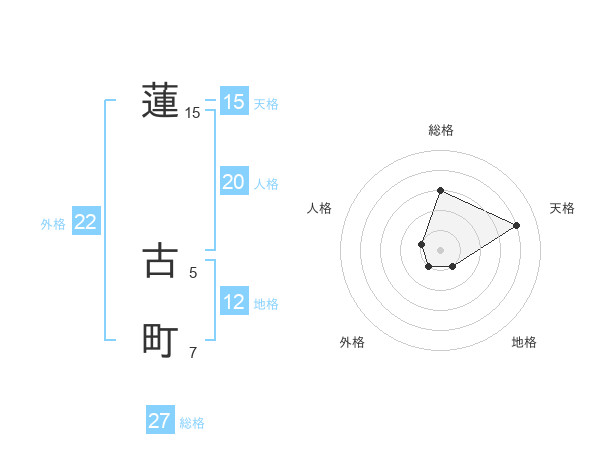 蓮 古町さんの天格は15画の4点!