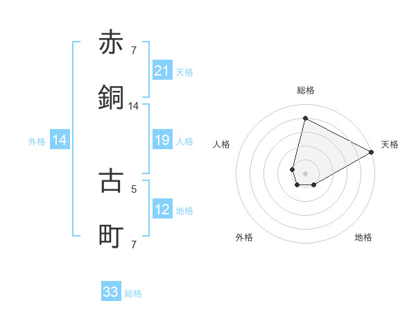 赤銅 古町さんを姓名の画数から五運を鑑定