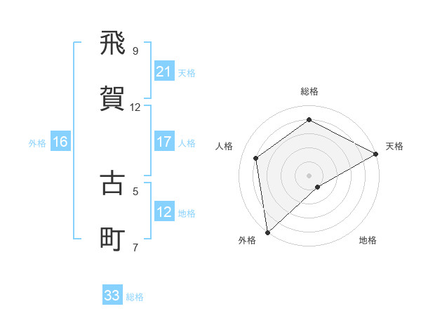 飛賀 古町さんを姓名の画数から五運を鑑定