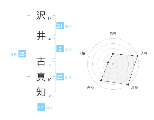 沢井 古真知さんの天格は21画の5点!