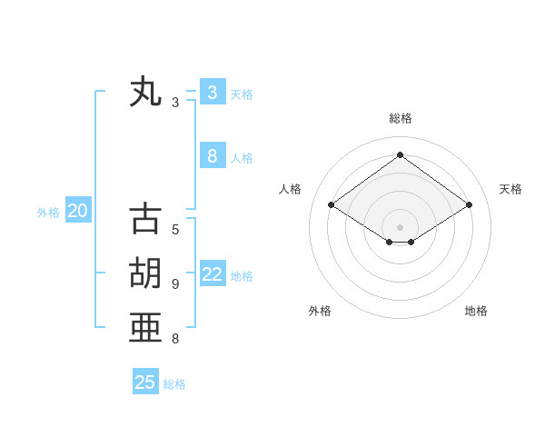 丸 古胡亜さんを姓名の画数から五運を鑑定