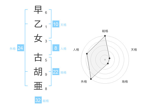 早乙女 古胡亜さんの総格は32画の5点!